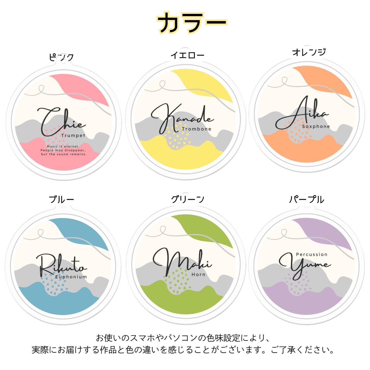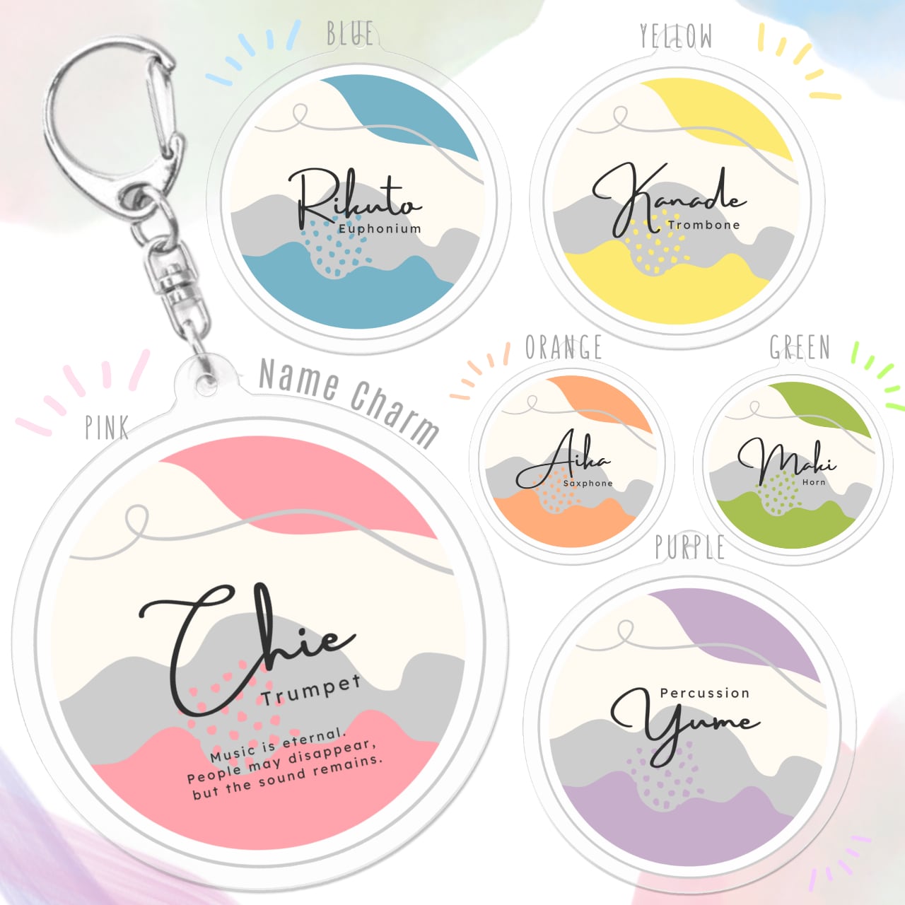楽器名+お名前でお作りするアクリルキーホルダーです。