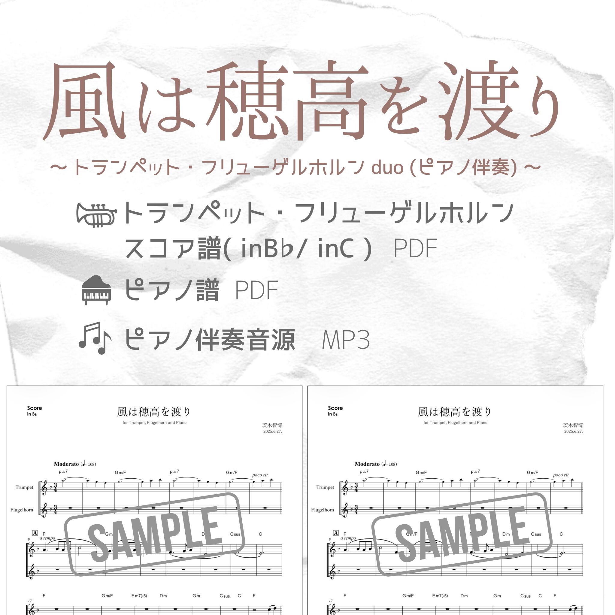 【 楽譜 / 音源 】風は穂高を渡り / トランペット・フリューゲルホルン デュオ ( ピアノ伴奏 )