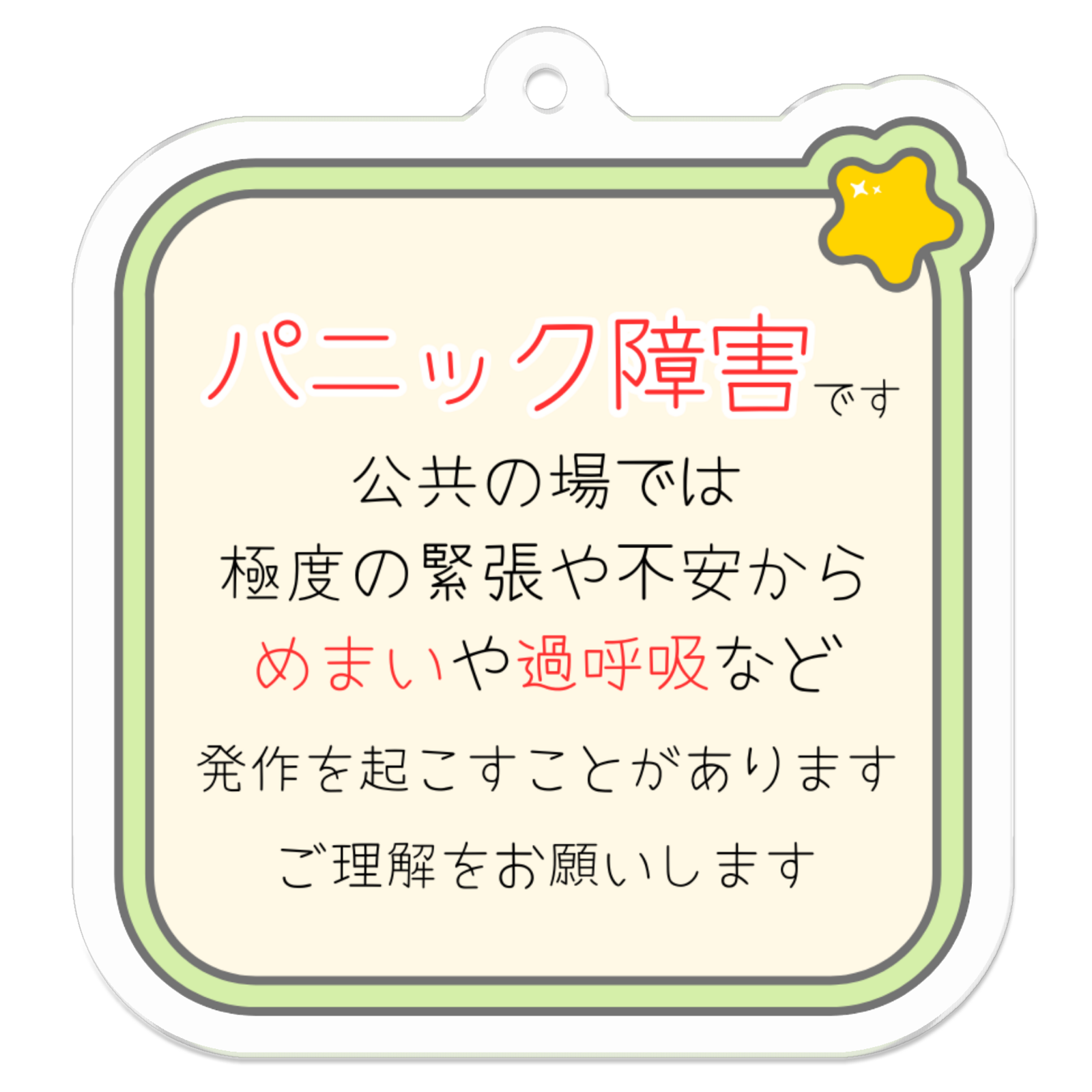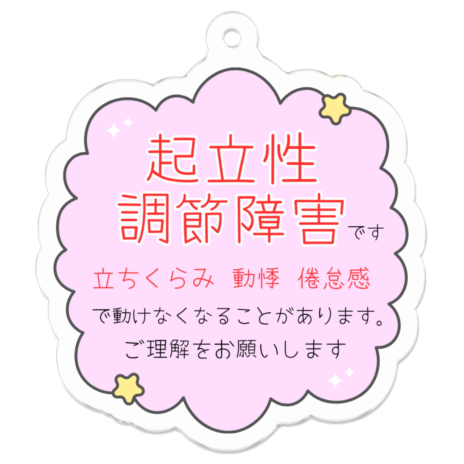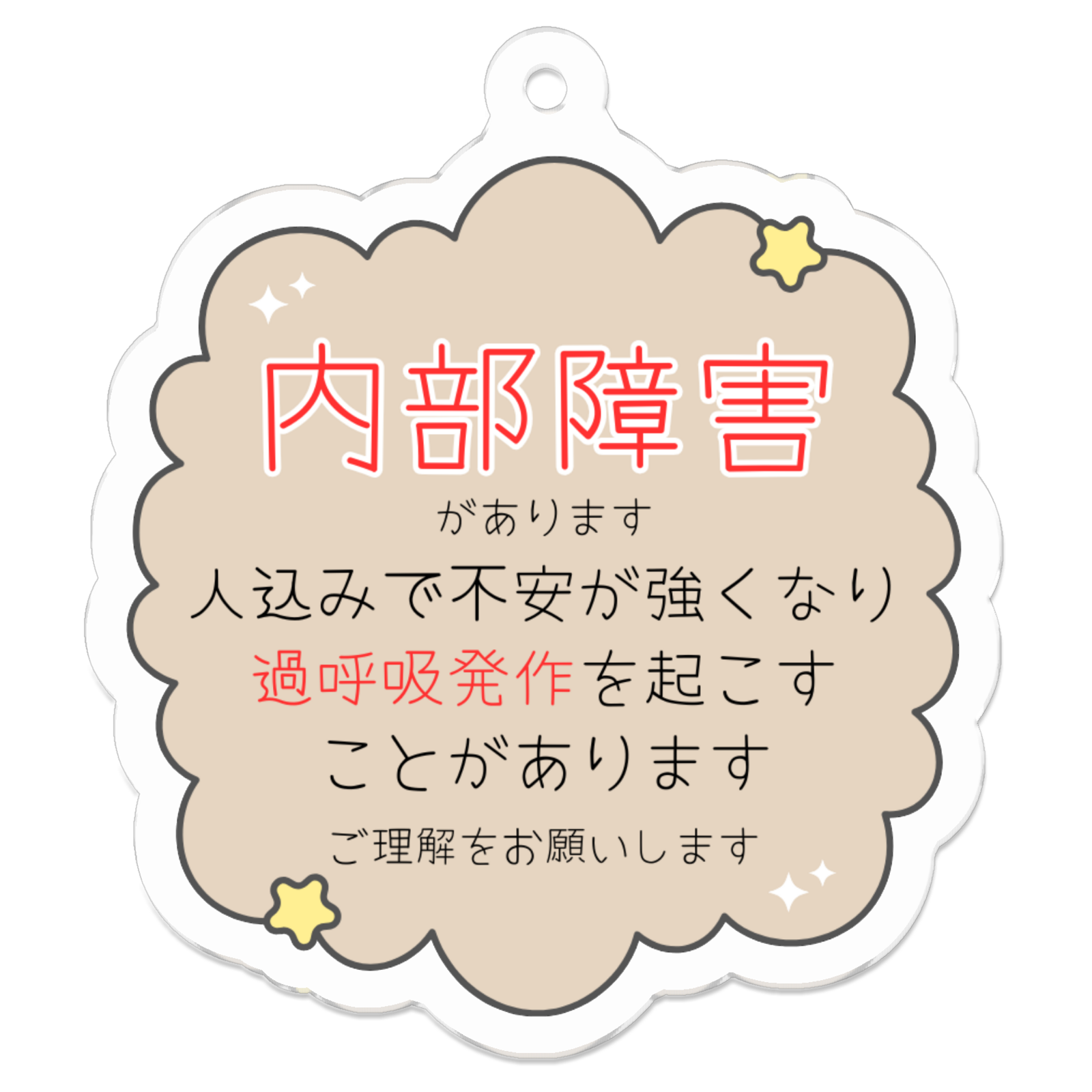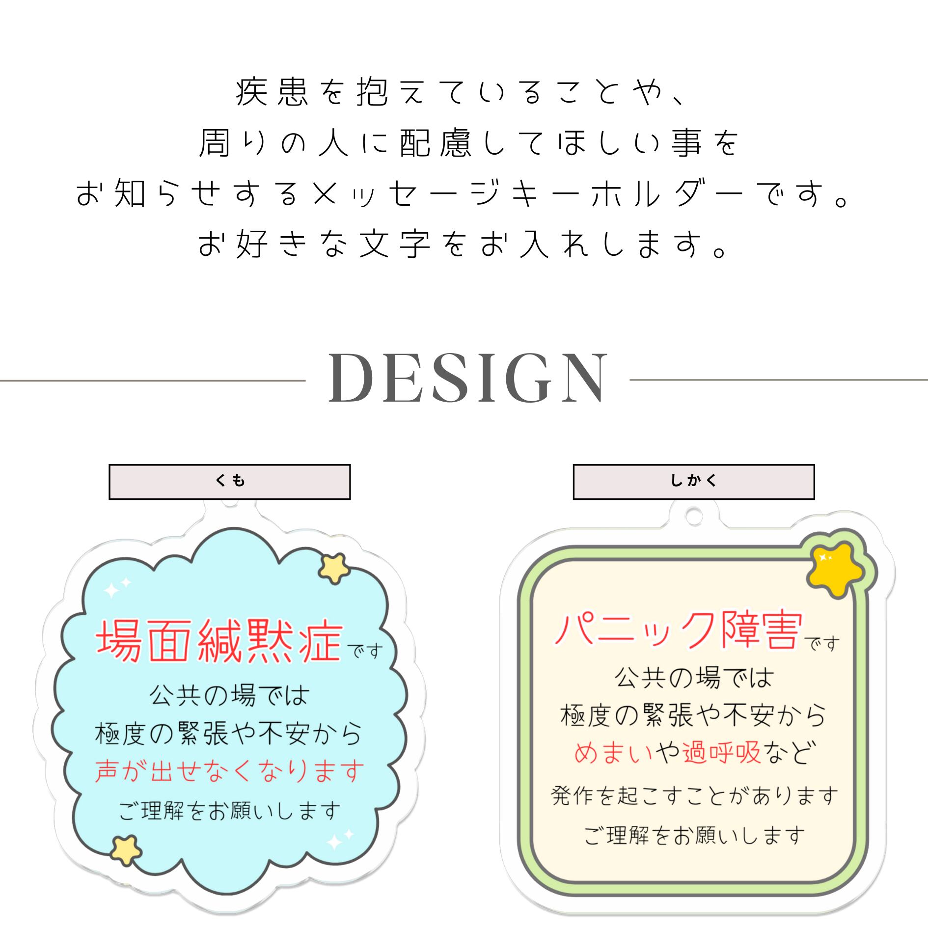 目には見えない疾患を抱えていることや、周りの人に配慮してほしい事をお知らせするメッセージキーホルダーです。