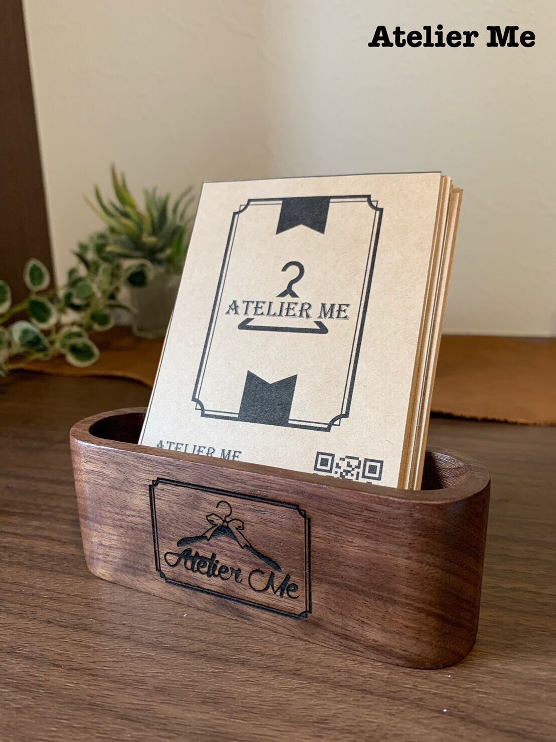あなたの好きな文字やお店のロゴを刻印できる、世界で1つのオリジナルの木製カードスタンドです♪