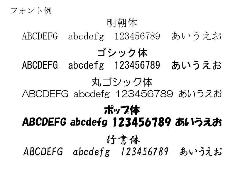 ・画像データがない場合は、フォント見本よりフォントをお選び頂くか、ご希望のフォント名を明記下さい。
