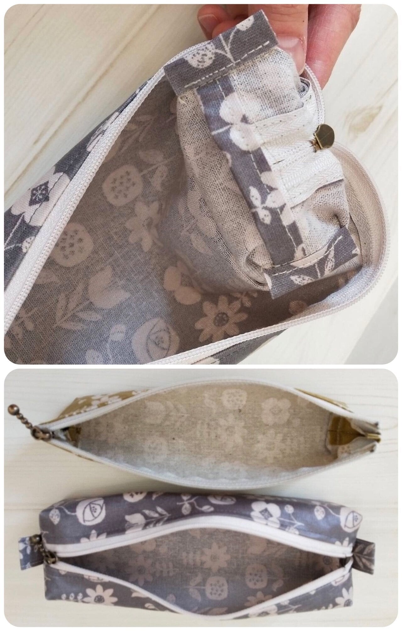 ○たっぷりタイプの内側の縫い代は別布でくるんでキレイに仕上げました。スリムタイプは形状上くるめませんでしたが、ラミネート生地は切りっぱなしでもほつれませんのでご安心下さい。